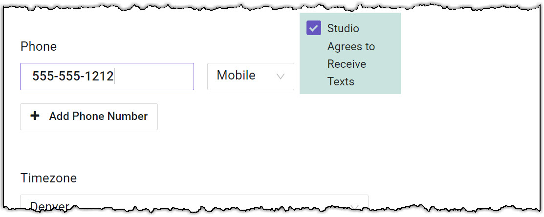 - Make sure that the check box titled "Studio agrees to receive texts" is checked.